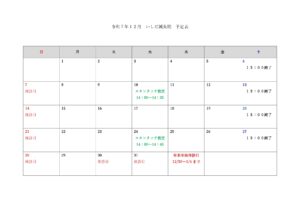 2025年12月の予定表です。